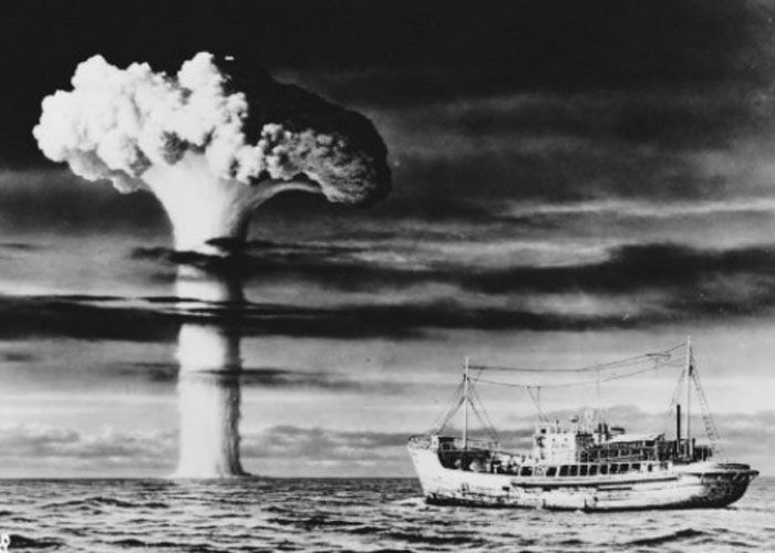 Die Eröffnungsszene des Films von 1954 nimmt Bezug auf einen wahren Zwischenfall in der Seefahrt: Das Fischerboot Lucky Dragon No. 5 kam einem Atomwaffentest zu nahe und wurde radioaktiv verstrahlt. Der Film beginnt mit einer ähnlichen Situation, nur dass hier das Boot Feuer fängt und sinkt. Das Boot im Film trägt in Anspielung auf das Originalschiff sogar die Markierung „No. 5“.