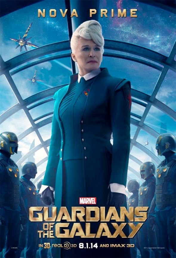 Neben Yondu sehen wir zwei Mitglieder der intergalaktischen Polizei, des Nova Corps. John C. Reilly ist als Nova Corpsman Rhomann Dey und Glenn Close als intergalaktische Polizeichefin Nova Prime zu sehen.