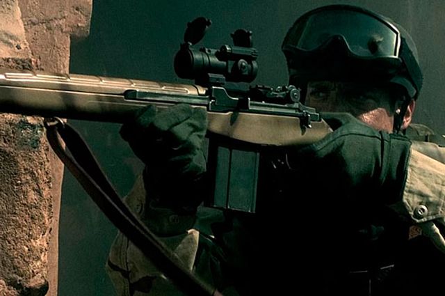 Schütze: Johnny Strong als Delta Force Sergeant First Class Randy Shughart Gewehr: M14