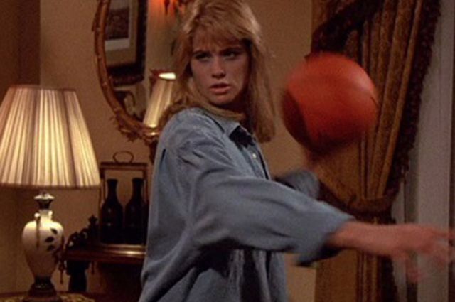 Aus: „Der tödliche Freund“ (Wes Craven, USA 1986) Jaja, Sport ist Mord und auch der Autor dieser Zeilen hatte schon oft einen Basketball im Gesicht gehabt. Dass man die orangene Pille aber mit solch tödlicher Geschwindigkeit werfen kann, ist jedenfalls äußerst erschreckend und sollte zum sofortigen Rücktritt führen, ehe man selbst dran glauben muss.