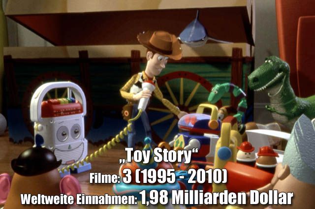 Platz 20 „Toy Story“ Gesamtes Einspielergebnis (weltweit): 1.981.574.722 $ Durchschnittliches Einspielergebnis (weltweit): 660.524.907 $ FILME (3): „Toy Story“: 382.464.183 $ „Toy Story 2“: 529.292.311 $ „Toy Story 3“: 1.069.818.229 $