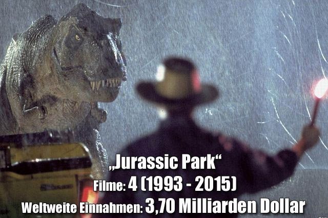 Platz 17 „Jurassic Park“ Gesamtes Einspielergebnis (weltweit): 2.191.399.278 $ Durchschnittliches Einspielergebnis (weltweit): 730.466.426 $ FILME (3): „Jurassic Park“: 1.038.812.599 $ „Vergessene Welt - Jurassic Park“: 786.686.679 $ „Jurassic Park III“: 365.900.000 $