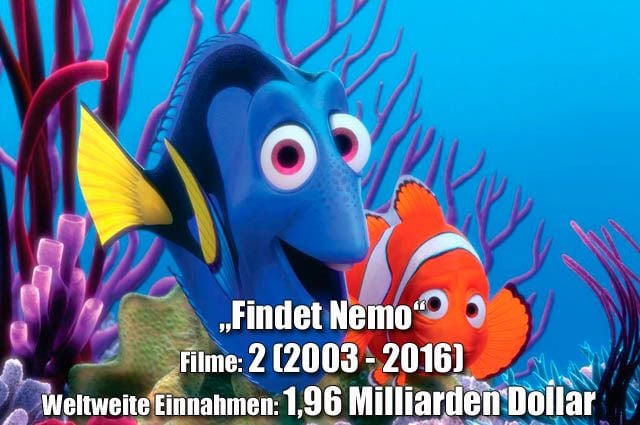 Platz 15 „Madagascar“ Gesamtes Einspielergebnis (weltweit): 2.270.571.575 $ Durchschnittliches Einspielergebnis (weltweit): 567.642.893 $ FILME (4): „Madagascar“: 556.559.566 $ „Madagascar 2“: 599.516.844 $ „Madagascar 3: Flucht durch Europa“: 746.921.277 $ „Die Pinguine aus Madagascar”: 367.573.888 $