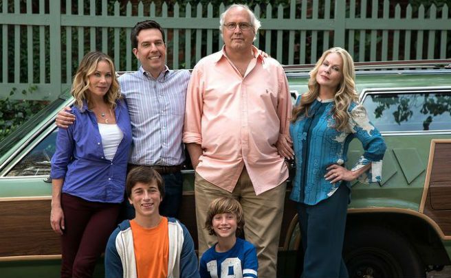 Von links nach rechts: Christina Applegate, Skyler Gisondo, Ed Helms, Chevy Chase und Beverly D’Angelo