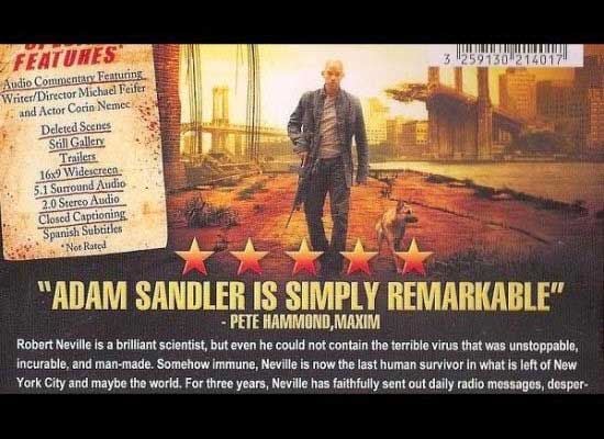 Adam Sandler war zwar nicht der Hauptdarsteller von „I am Legend“, aber wenn er es gewesen wäre, hätte er sicher überzeugt! Davon ist zumindest der im Bild zitierte Pete Hammond der festen Überzeugung.