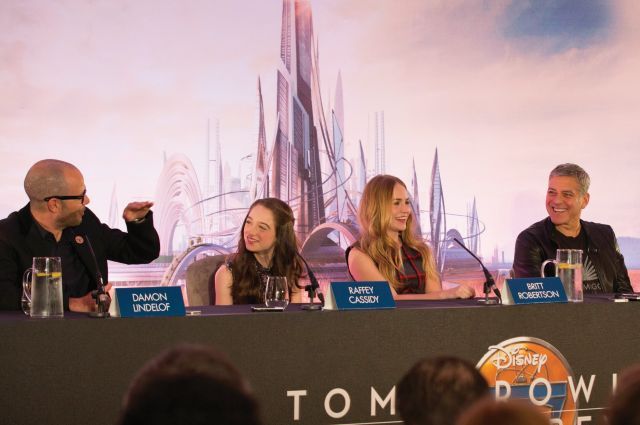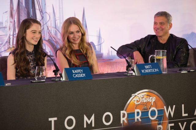 Britt Robertsons Filmfigur Casey reist in „A World Beyond“ mittels eines „Tomorrowland“-Ansteckers in die wundersame Welt der Technologie. Da musste natürlich auch die Frage gestellt werden, an was für einen Ort denn die Stars reisen würden, wenn sie auch so einen Pin hätten... und was dann kam, hat alle überrascht. Denn Jungdarstellerin Raffey Cassidy hat schon einen recht verrückten Traum… Raffey Cassidy: Ich würde gerne in einen Wald reisen, voller riesiger Bäume und mit Wölfen. Dann könnte ich so etwas wie die Wolf-Lady unter ihnen sein. Ach ja... und es würde auch Jetpacks geben. Nachdem Britt Robertson gesteht, dass ihre Idee, einfach nur auf die Malediven zu reisen, im Vergleich dazu wohl ziemlich langweilig wirkt, wird der Gedanke von einem Wald voller Wölfe und Jetpacks weiter ausgebaut: Brad Bird: Ich glaube, keine Idee wird besser sein als die mit den Wölfen im Wald. George Clooney: Ja, das klingt wirklich großartig, ich will mehr davon hören. Brad Bird: Geben wir den Wölfen die Jetpacks? Raffey Cassidy: Ich glaube, die Wölfe würden die Jetpacks schon vor uns haben. George Clooney: Das wird dein nächster Film werden… Damon Lindelof: „Wolfpack“! (Gelächter.)