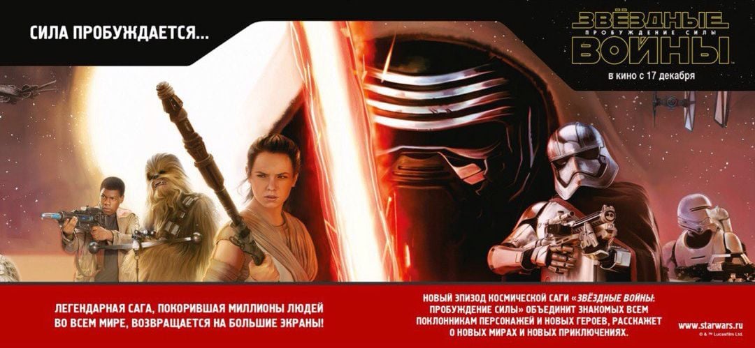 Bei makingstarwars.net hat man inzwischen ein neues Promo-Banner zur heißerwarteten „Star Wars“-Fortsetzung aufgetan. Mit dem Plakat wird das Kino-Abenteuer in Russland beworben. Ebenso wie in Deutschland und vielen weiteren Ländern wird „Das Erwachen der Macht“ dort am 17. Dezember 2015 starten. Und schon vor seinem Start macht der Film Schlagzeilen: Der zweite Teaser zu "Star Wars: Das Erwachen der Macht" hat es in das Guinness-Buch der Rekorde geschafft, außerdem ergab eine Analyse der Bank Morgan Stanley, dass sich das Abenteuer zum dritterfolgreichsten Film aller Zeiten mausern könnte. Die Vorfreude wächst weiter...