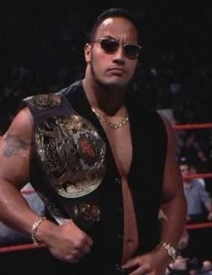 The Rock mit einem seiner vielen Wrestling-Titel.