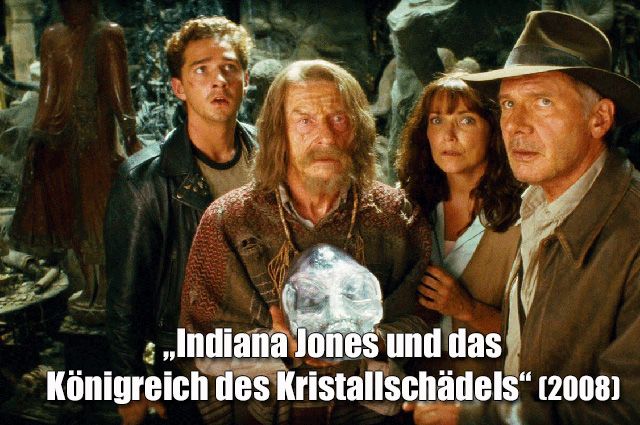 „Indiana Jones und das Königreich des Kristallschädels“ (2008) „Rein für sich betrachtet ist „Indiana Jones und das Königreich des Kristallschädels“ ein passabler, launiger Abenteuerfilm, der über zwei Stunden gewissen Spaß verbreitet. Getragen von einem charismatischen Harrison Ford geht dem vierten „Indy“-Teil aber zu früh die Puste aus. Die Spannung hält sich in überschaubaren Grenzen, wozu auch die größtenteils farblose Nebendarstellerriege ihren Teil beiträgt. Dass Sci-Fi-Fan Spielberg im Finale dick aufträgt, schmeckt sicher auch nicht jedem. Die unvergleichliche Atmosphäre und die Magie, welche die ersten Filme mit ganz unterschiedlichen qualitativen Schwerpunkten zu Meisterwerken machten, kommen in der Wiederbelebung zu selten auf. Diesen ungleichen Kampf gegen die Geister der Vergangenheit konnten Spielberg und Co. nur verlieren. Der Ton stimmt zwar generell, aber bei den Zwischentönen hat sich Spielberg teils vergriffen. Gemessen an den wahnwitzigen Erwartungen, die von den Machern durch strengste Geheimhaltung zusätzlich geschürt wurden, ist „Indy 4“ somit wie befürchtet eine Enttäuschung.“ (--> zur FILMSTARTS-Kritik!)