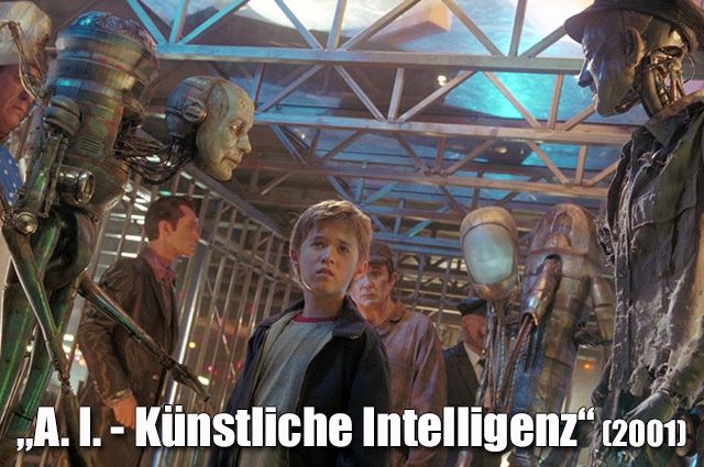 „A.I. - Künstliche Intelligenz“ (2001) „Steven Spielbergs märchenhafte Science-Fiction-Parabel „A.I. – Künstliche Intelligenz" ist eine sehenswert-faszinierende Odyssee mit dem Ziel, existenzielle Fragen des Bewusstseins zu stellen. Was macht den Mensch zum Menschen? Reine Intelligenz oder die gleichzeitige Fähigkeit, Gefühle zu empfinden. Das Meisterwerk „A.I." ist eine bildgewaltige wie tiefschürfende Annäherung an die Antworten.“ (--> zur FILMSTARTS-Kritik!)