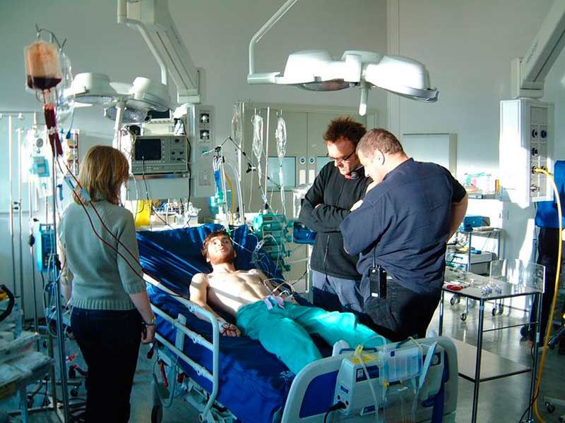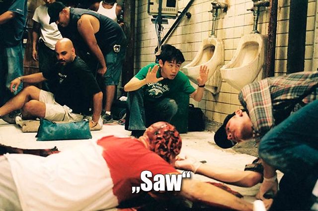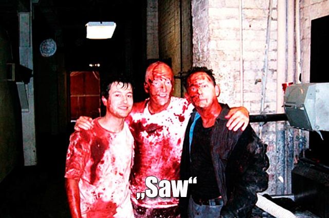 Gruppenfoto mit dem Überraschungs-Killer am Set von „Saw“.