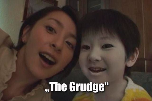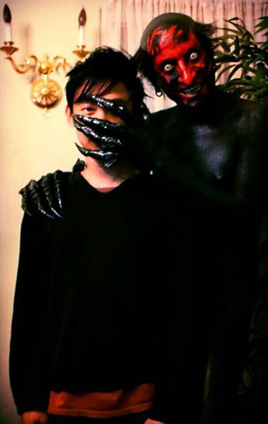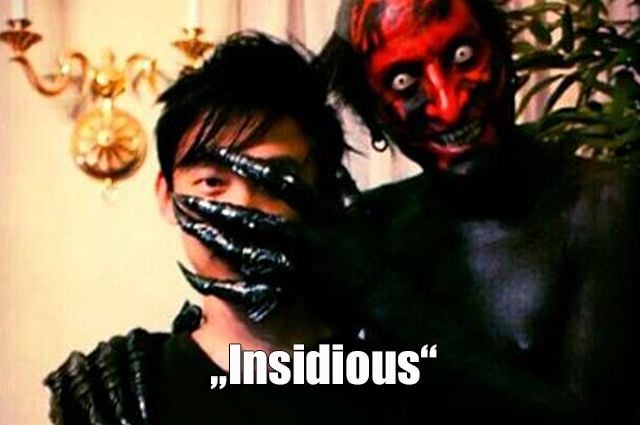 James Wan posiert mit seinem Dämon am Set von „Insidious“.