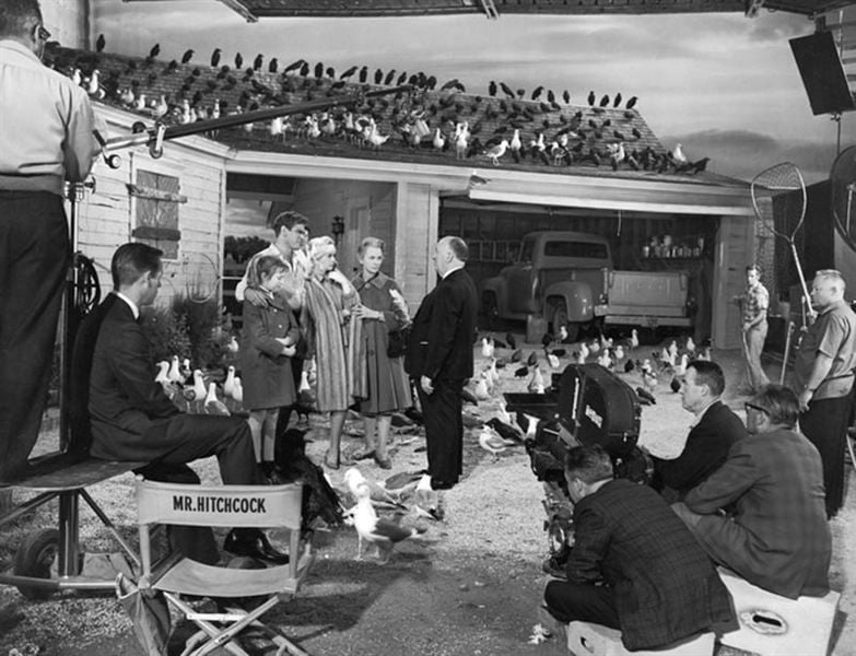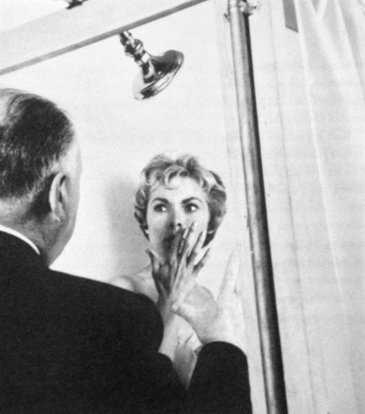 Janet Leigh und Alfred Hitchcock am Set von „Psycho“ kurz vor dem Dreh der legendären Duschszene.