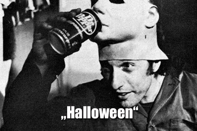 Michael Meyers trinkt eine Cola am Set von „Halloween – Die Nacht des Grauens“.