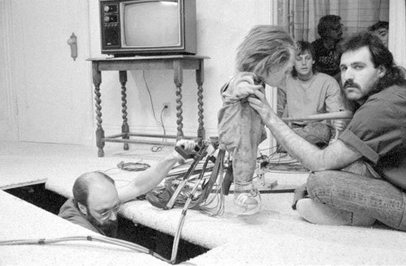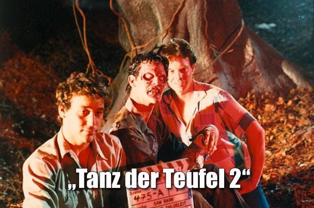 Sam Raimi und Zombie am Set von „Tanz der Teufel 2“.