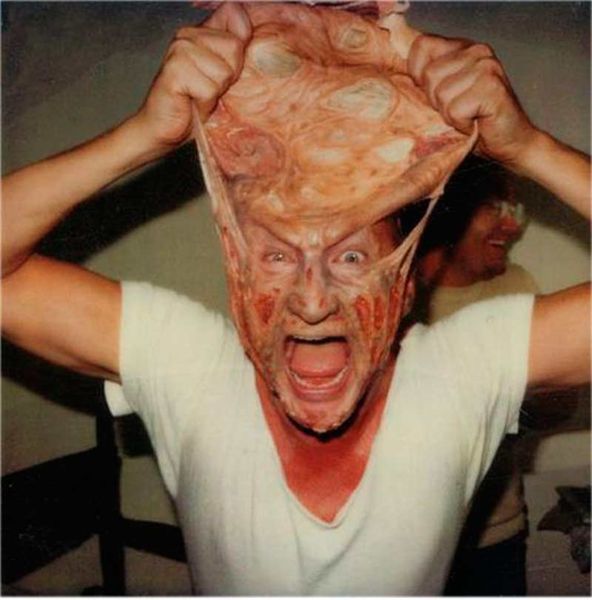 Robert Englund reißt sich am Set von „Nightmare – Mörderische Träume“ seine Freddy-Maske herunter.