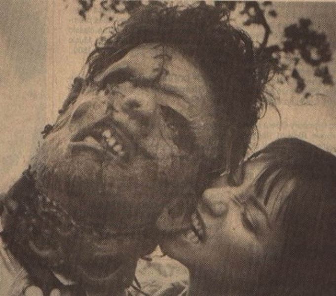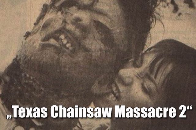 Ein zärtlicher Biss ins Ohr am Set von „The Texas Chainsaw Massacre 2“.