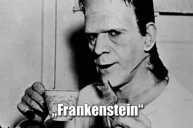 Boris Karloff gönnt sich einen Tee und Toast am Set von „Frankenstein“.