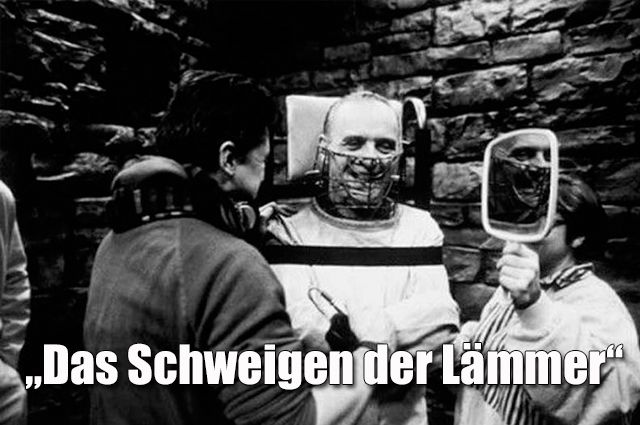 Anthony Hopkins lacht sich schlapp am Set von „Das Schweigen der Lämmer“.