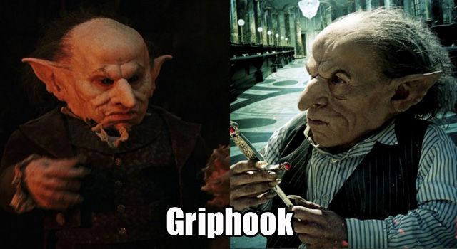 Der kleine Kobold Griphook, der bei der Zaubererbank Gringotts arbeitet, wurde in Teil 1 von Verne Troyer gespielt, während Warwick Davis ihm seine Stimme lieh. In „Die Heiligtümer des Todes - Teil 2“ übernahm Davis die Rolle dann komplett.