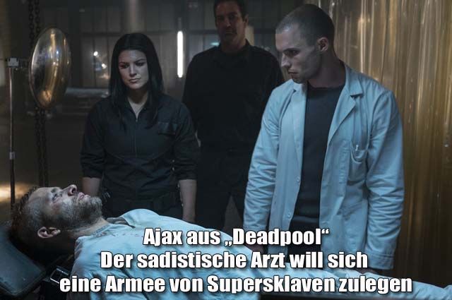 Als sich Wade Wilson (Ryan Reynolds) im Superhelden-Actioner „Deadpool“ in Behandlung begibt, um doch noch seinen angeblich unheilbaren Krebs loszuwerden, ahnt er nicht, worauf er sich da eingelassen hat: Denn sein scheinbarer Wohltäter Ajax (Ed Skrein) hat in Wahrheit etwas ganz anderes im Sinn als Wade ein langes Leben als Superheld zu bescheren. Der „sadistische Wichser“ (O-Ton Deadpool) will sich nämlich eine Armee von Supersklaven heranzüchten und unterzieht seine Patienten dafür einer schmerzhaften Prozedur, nach der sie - wie Wade - schrecklich entstellt sind.