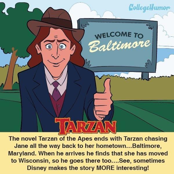 Die Disney-Version: In „Tarzan“ scheinen sich die Wege von Tarzan und Jane endgültig zu trennen, als Jane an Bord eines Schiffes in Richtung England geht. Ermutigt von ihrem Vater, hat sie allerdings gerade noch rechtzeitig einen Sinneswandel und springt über Bord: Sie hat erkannt, dass sie Tarzan liebt und für immer bei ihm im Dschungel bleiben will. Und so grausam war's vorher: Als seine große Liebe Jane in dem Roman „Tarzan bei den Affen“ von Edgar Rice Burroughs den Dschungel verlässt und in Richtung ihrer Heimatstadt Baltimore aufbricht, fackelt Tarzan nicht lange: Er lässt den Dschungel hinter sich und reist ihr hinterher.Als er die Schöne nicht in Baltimore antrifft, folgt er ihr sogar bis nach Wisconsin. Dort muss er aber direkt eine bittere Pille schlucken, denn Jane ist mittlerweile mit einem anderen Mann verlobt. Tarzan zieht sich zurück, um das Glück seiner geliebten Jane nicht zu zerstören.