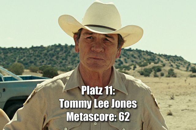 Die drei höchstbewerteten Filme von Tommy Lee Jones: „No Country For Old Men“ (Metascore: 91) „Auf der Flucht“ (Metascore: 88) „Lincoln“ (Metascore: 86)