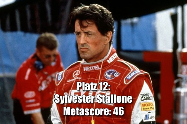 Die drei niedrigstbewerteten Filme von Sylvester Stallone: „Reach Me - Stop at Nothing...“ (Metascore: 21) „Get Carter - Die Wahrheit tut weh“ (Metascore: 24) „Driven“ (Metascore: 29)