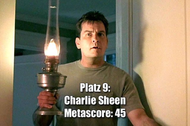 Die drei niedrigstbewerteten Filme von Charlie Sheen: „Scary Movie 5“ (Metascore: 11) „Charlies Welt - Wirklich nichts ist wirklich“ (Metascore: 28) „Machete 2: Machete Kills“ (Metascore: 41)