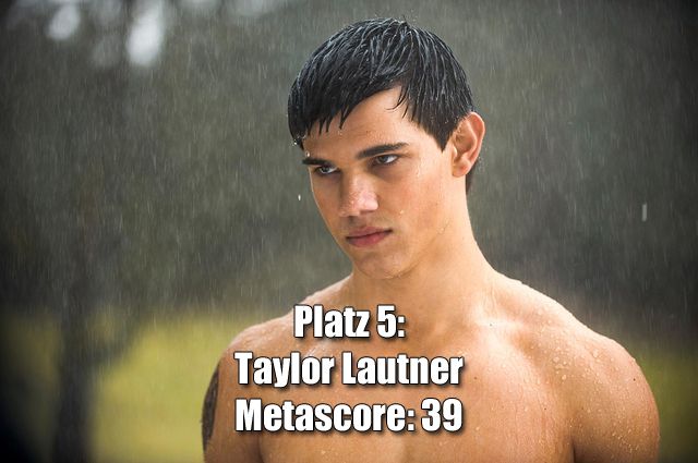 Die drei niedrigstbewerteten Filme von Taylor Lautner: „The Ridiculous 6“ (Metascore: 18) „Kindsköpfe 2“ (Metascore: 19) „Atemlos - Gefährliche Wahrheit“ (Metascore: 25)