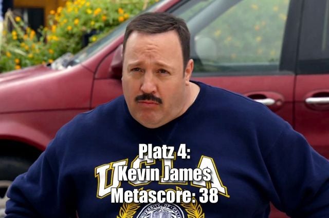 Die drei niedrigstbewerteten Filme von Kevin James: „Der Kaufhaus Cop 2“ (Metascore: 13) „Kindsköpfe 2“ (Metascore: 19) „Pixels“ (Metascore: 27)