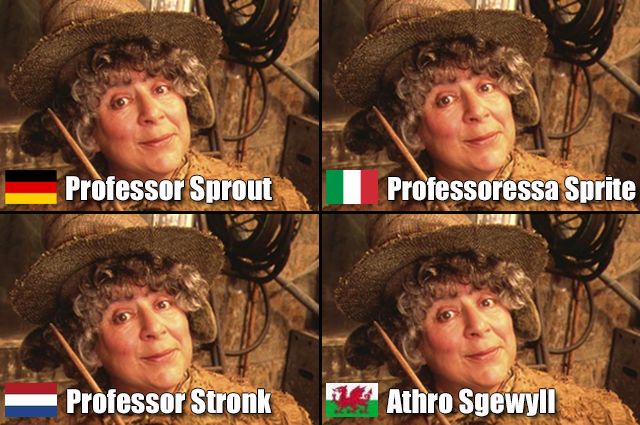 Zum niederländischen Namen: „Perkamentus” bedeutet (wenig überraschend) „Pergament”. Zum tschechischen Namen: „Brumbál” ist ein alter Begriff für „Hummel”.