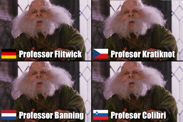 Zum niederländischen Namen: „Banning“ bedeuetet „Verbannung“. Zum slowenischen Namen: In Slowenien ist der kleinwüchsige Professor nach dem gleichnamigen winzigen Vogel benannt.