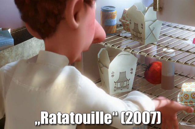 Auch in „Ratatouille“ (2007) sind die Pappkartons zu sehen. Hier stehen gleich mehrere in Alfredos Kühlschrank und schreien förmlich „Dauersingle“!