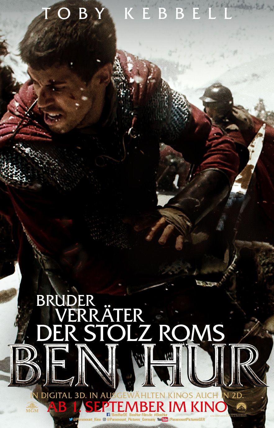 Zur Zeit von Jesus Christus: Der jüdische Prinz Judah Ben-Hur (Jack Huston) und Messala (Toby Kebbell), Sohn eines römischen Steuereintreibers, sind eigentlich beste Freunde … bis Messala nach Rom geht und verändert zurückkehrt. Er verspottet seinen einstigen Freund und dessen Religion und sorgt bald mit einer Intrige dafür, dass Judahs Familie im Gefängnis landet und dieser selbst als Sklave verkauft wird. Der durchleidet von nun an ein Martyrium, dass er nur überlebt, weil ein Gedanken ihn antreibt: Rache! Bei einem großen Wagenrennen in Rom bietet sich die Gelegenheit dafür…