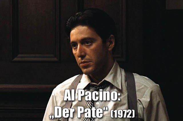 Das Naturtalent von Al Pacino setzte sich in der Filmwelt rasend schnell durch. Ein Auftritt in „Ich, Natalie“, dann der Kultfilm „The Panic In Needle Park“, und schon folgte der große Durchbruch als Michael Corleone in Francis Ford Coppolas Mafia-Drama „Der Pate“, für den Pacino eine Oscar-Nominierung kassierte.