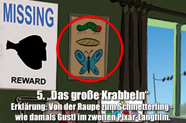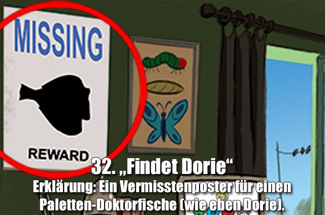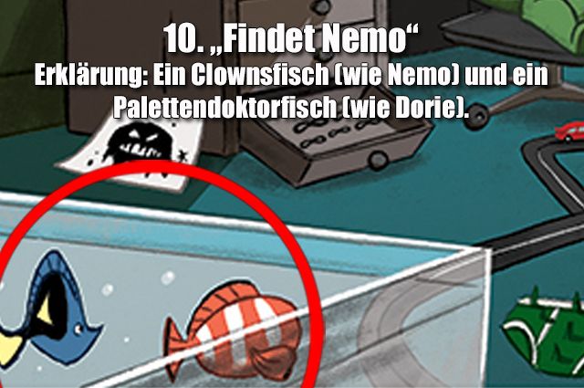 Zum näherrückenden Kinostart der „Findet Nemo“-Fortsetzung „Findet Dorie“ am 29. September 2016 hat Disney dieses Bild veröffentlicht, auf dem 33 Easter Eggs zu Filmen und Figuren aus dem Pixar-Universum versteckt sind.