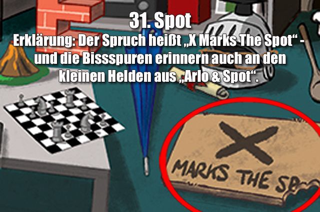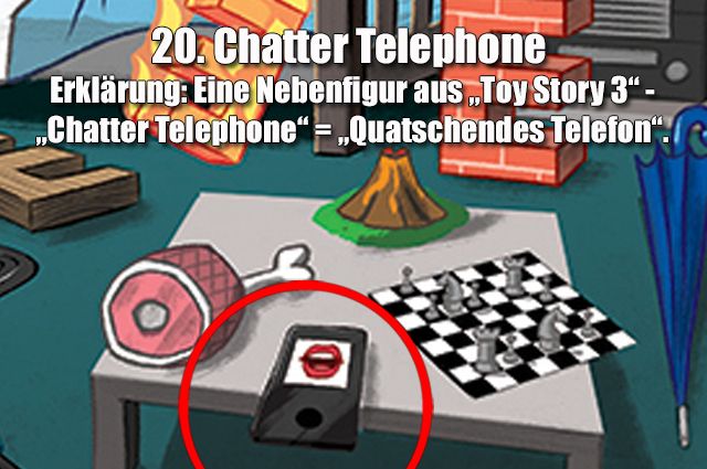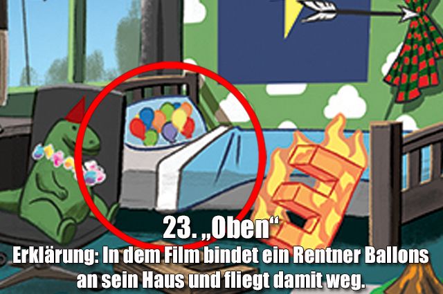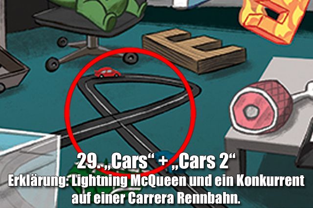 Wer findet alle 33 Anspielungen auf Pixar-Filme und -Figuren auf diesem Bild?