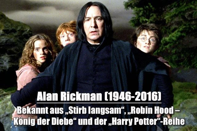 Alan Rickman (1946-2016) Bekannt aus „Stirb langsam“, „Robin Hood – König der Diebe“ und der „Harry Potter“-Reihe