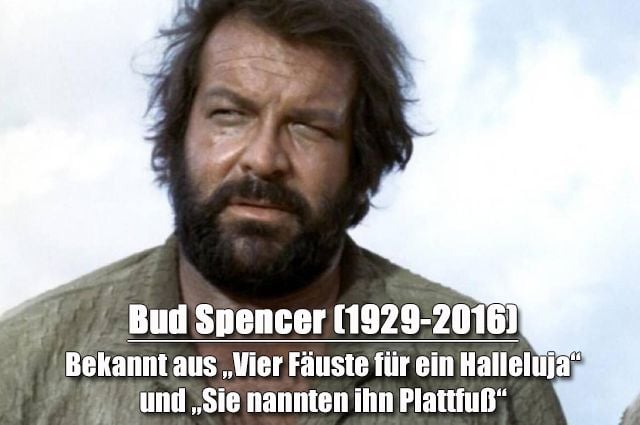 Bud Spencer (1929-2016) Bekannt aus „Vier Fäuste für ein Halleluja“ und „Sie nannten ihn Plattfuß“