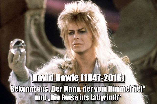 David Bowie (1947-2016) Bekannt aus „Der Mann, der vom Himmel fiel“ und „Die Reise ins Labyrinth“
