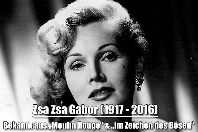 Zsa Zsa Gabor (1917-2016) Bekannt aus „Moulin Rouge“ und „Im Zeichen des Bösen“