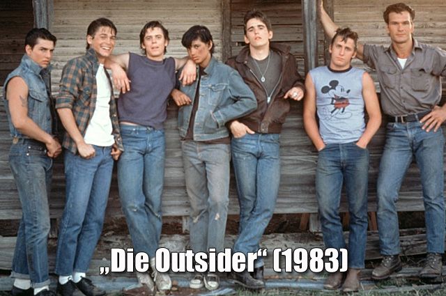 „Die Outsider – Rebellen ohne Grund“ (1983) Wenn man nicht wüsste, dass „Die Outsider“ 1983 gedreht wurde, könnte man ihn auch für deutlich älter halten – so akkurat und detailgetreu reproduzierte Coppola hier die Ästhetik der frühen 60er und zitiert die Helden der Rebellengeneration der 50er Jahre mit ihren Ikonen James Dean und Marlon Brando. (--> Zur FILMSTARTS-Kritik!)