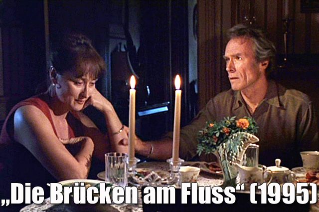 „Die Brücken am Fluss“ (1995) In „Die Brücken am Fluss" kommen all die Tugenden zum Tragen, die Eastwood, der zuvor mit „Erbarmungslos" und „Perfect World" den endgültigen künstlerischen Durchbruch geschafft hatte, das Prädikat eines klassischen Filmemachers eingebracht haben. Ohne überflüssigen Schnickschnack, aber mit Ruhe und Genauigkeit entfaltet er das Drama der Beziehung. (--> Zur FILMSTARTS-Kritik!)