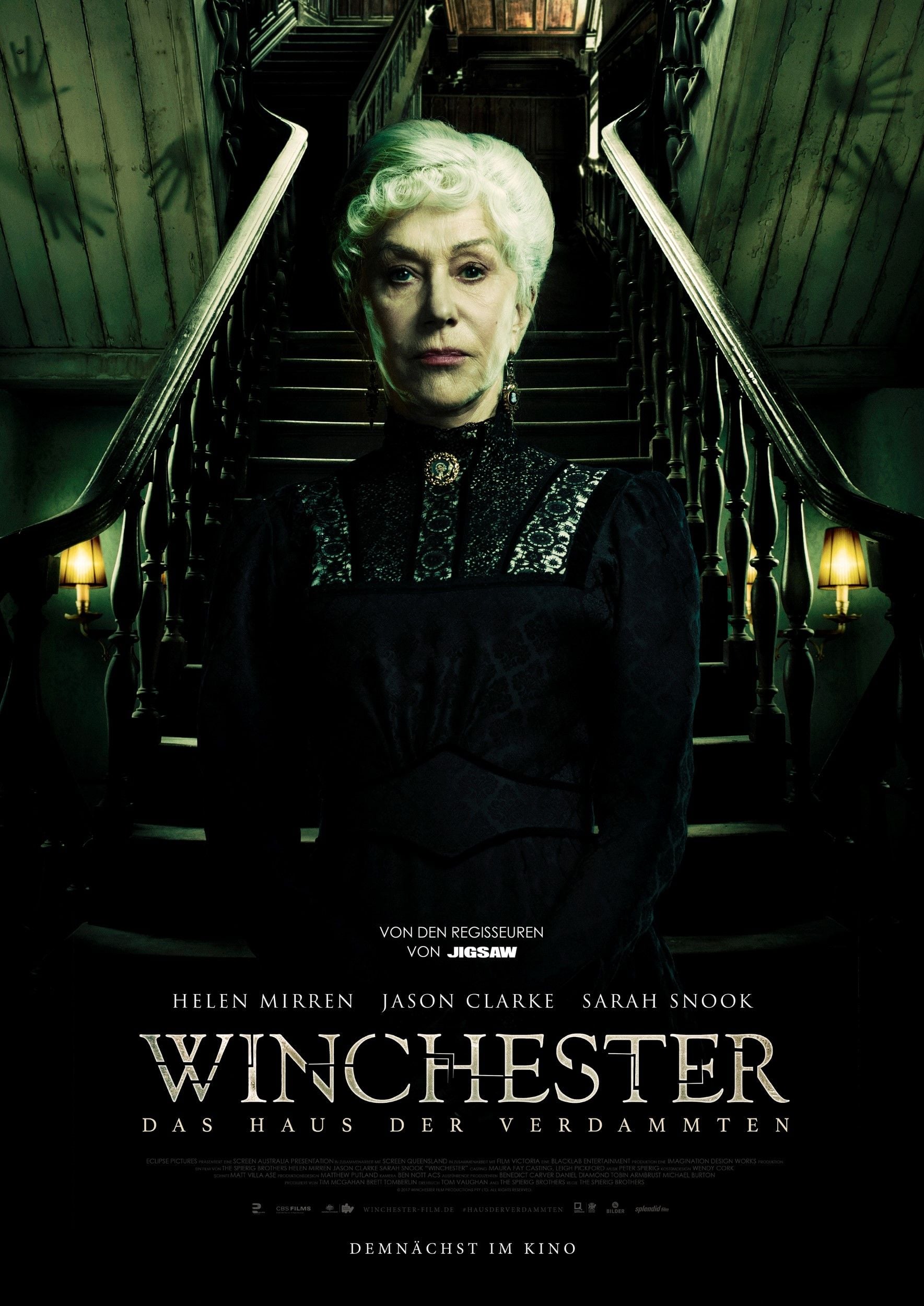 Am 15. März 2018 schicken die „Jigsaw“-Regisseure Michael und Peter Spierig Oscarpreisträgerin Helen Mirren in den Kampf gegen die Geister ihrer Vergangenheit. Dann startet der Haunted-House-Horror „Winchester - Das Haus der Verdammten“ in den deutschen Kinos. Das Poster, mit der ganz in Schwarz gekleideten Mirren, zeigen wir euch exklusiv. Die Geschichte des Filmes basiert lose auf wahren Begebenheiten. Das echte Winchester-Haus steht in San Jose und ist ein Touristenfänger.