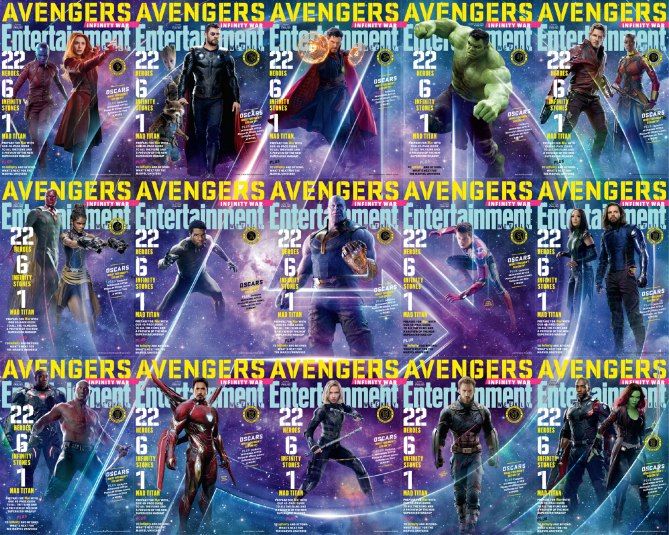 Nach 18 Filmen aus dem Marvel Cinematic Universe treffen in „Avengers 3: Infinity War“ demnächst so viele Comic-Helden auf der großen Leinwand zusammen wie noch nie zuvor, schließlich gilt es, dem mächtigen Titan Thanos (Josh Brolin) die Stirn zu bieten, der mithilfe der Infinity-Steine das Universum unterjochen will und so auch die Erde bedroht. Thanos hat es als großer Bösewicht nun auch auf eines von 15 Covern der kommenden Ausgabe des Magazins Entertainment Weekly geschafft. Auf den anderen 14 geben sich 22 seiner Widersacher die Ehre. Kombiniert formen die 15 Bilder zudem ein großes Avengers-Symbol vor kosmischem Hintergrund.