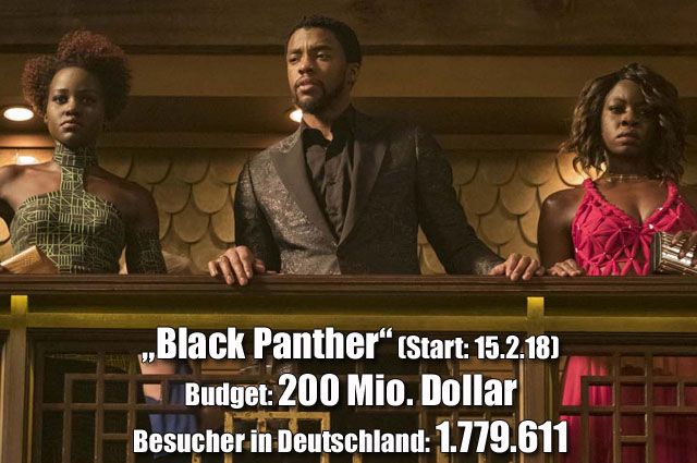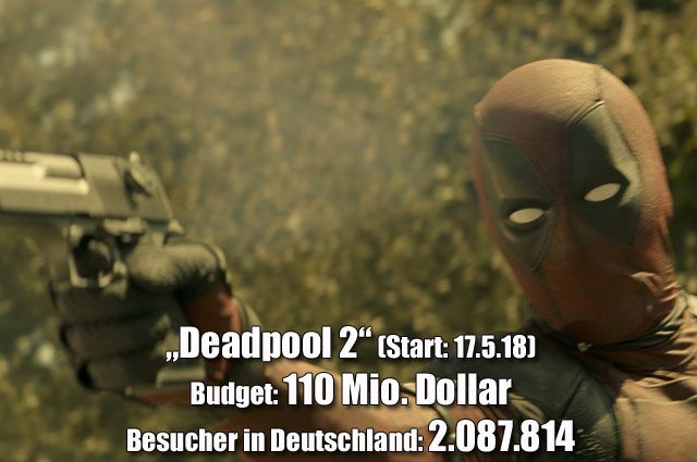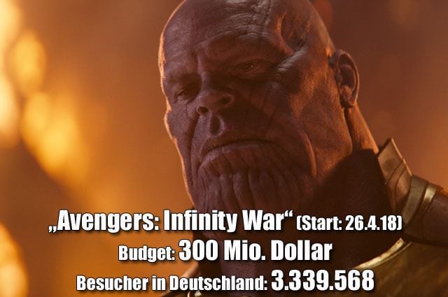 Bisher erfolgreichster Film des Jahres in Deutschland ist Disney/Marvels Comic-Actioner „Avengers: Infinity War“, der auf rund 3,3 Millionen Besucher kommt – und weltweit überragende zwei Milliarden Dollar eingespielt hat. Auch auf Platz 3 und 4 sind mit „Deadpool 2“ (2,1 Millionen) und „Black Panther“ (1,8 Millionen) zwei Marvel-Filme zu finden. Durchbrochen wird die Phalanx der Marvel-Superhelden von SM-Supermann Christian Grey (Jamie Dornan), der die inzwischen gar nicht mehr schüchterne Anastasia Steele (Dakota Johnson) nun endlich geheiratet hat: „Fifty Shades Of Grey 3“ zeigt mit den erzielten drei Millionen Besuchern eine erstaunliche Konstanz, die Teile 1 (4,4 Millionen) und 2 (3,4 Millionen) waren zwar erfolgreicher, der Rückgang fällt aber nur noch sehr moderat aus.