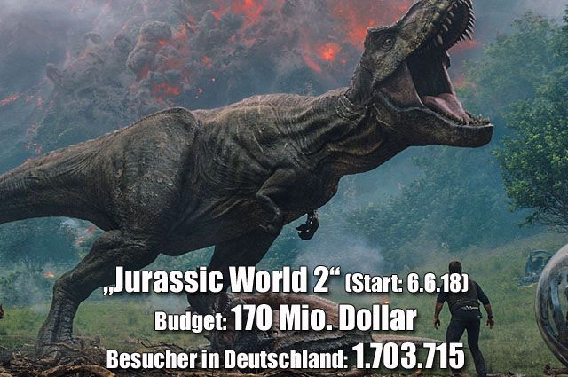 Also wagt sich keiner der großen Verleiher während der WM mit einem kommerziell wichtigen Film raus, „Jurassic Park: Das gefallene Königreich“ mit einem Start am 6. Juni ist der letzte gestartete Blockbuster vor der WM. Die Idee, den schwachen Sommermarkt mit einem einzigen Film zu dominieren, hat zwar bezogen auf die Chartposition funktioniert, „Jurassic Park: Das gefallene Königreich“ führte vier Wochen unangefochten die Kinohitliste an (bevor er jetzt von „The First Purge“ verdrängt wird), aber insgesamt bleibt der zweite Teil der Reihe mit derzeit 1,7 Millionen weit hinter „Jurassic World“ (4,1 Millionen) zurück. Am Ende wird „Jurassic Park 2“ rund 2,2 Millionen verkaufte Tickets vorweisen können – die wenigsten des fünfteiligen Franchises, das beim ersten Teil „Jurassic Park“ noch 9,3 Millionen Besucher verzeichnete.
