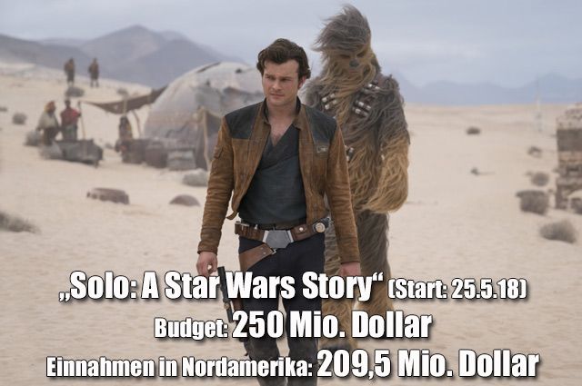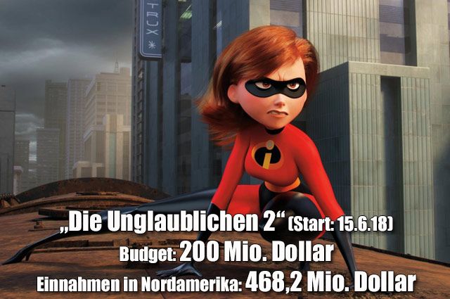 Spektakulär ist auch das Comeback von Disney/Pixars „Die Unglaublichen“. Der zweite Teil der Animationskomödie generierte 14 Jahre nach dem Original überragende 468 Millionen Dollar (nach 20 Tagen Spielzeit) – Platz 3. Die starken Zahlen für die Ränge 4 und 5 überraschen ebenso wenig. Marvels „Deadpool 2“ (312 Millionen Dollar) und Universals Dino-Abenteuer „Jurassic World: Das gefallene Königreich“ (297 Millionen Dollar nach 13 Tagen) wurden den hohen Erwartungen gerecht. Das kann man von Disneys „Star Wars“-Spin-off „Solo: A Star Wars Story“ nicht gerade behaupten. Zwar sind die 209 Millionen Dollar auf Platz 6 nicht so schlecht wie die Vergleichswerte im Rest der Welt, wo das Weltraum-Abenteuer nur noch weitere 162 Millionen einnahm, aber dennoch hatte man sich im Mäusekonzern mehr von dem Han-Solo-Film versprochen.