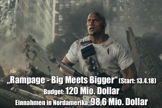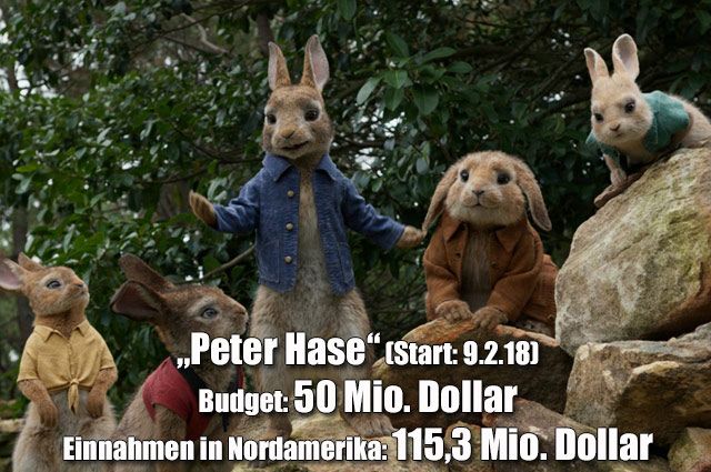 Es gibt aber auch zwei echte Überraschungen in den Top 10. Die größte ist zweifellos das sensationelle Einspielergebnis des nur 17 Millionen Dollar teuren Horror-Dramas „A Quiet Place“ (Rang 7), der 187 Millionen Dollar einspielte. Aber auch die 115 Millionen Dollar des frechen Familien-Abenteuers „Peter Hase“ (Rang 10) sind bemerkenswert.